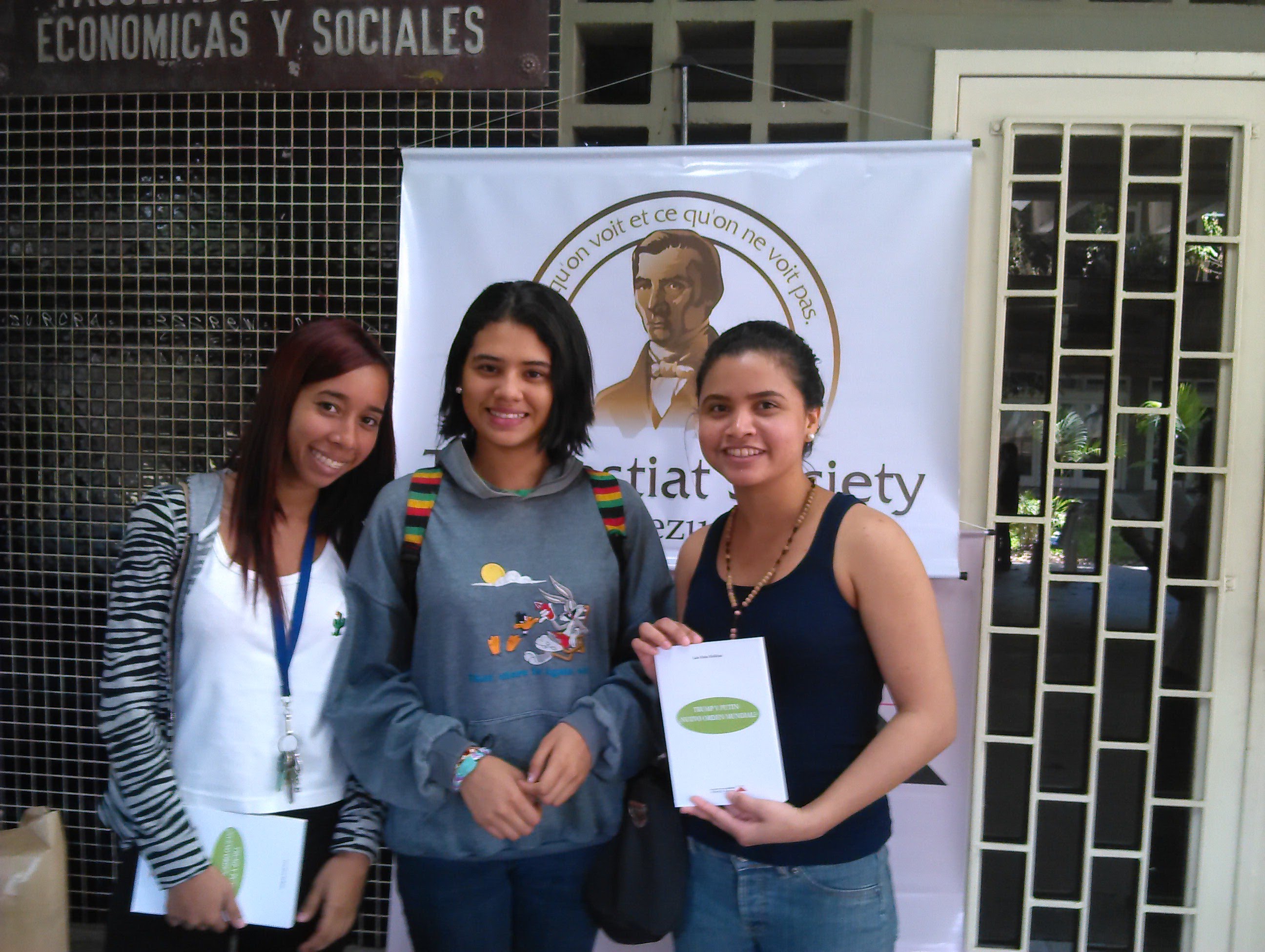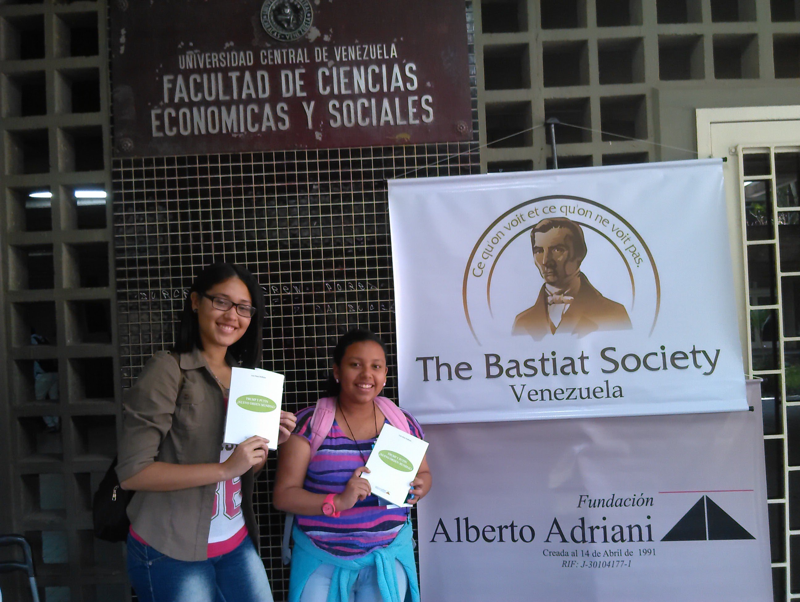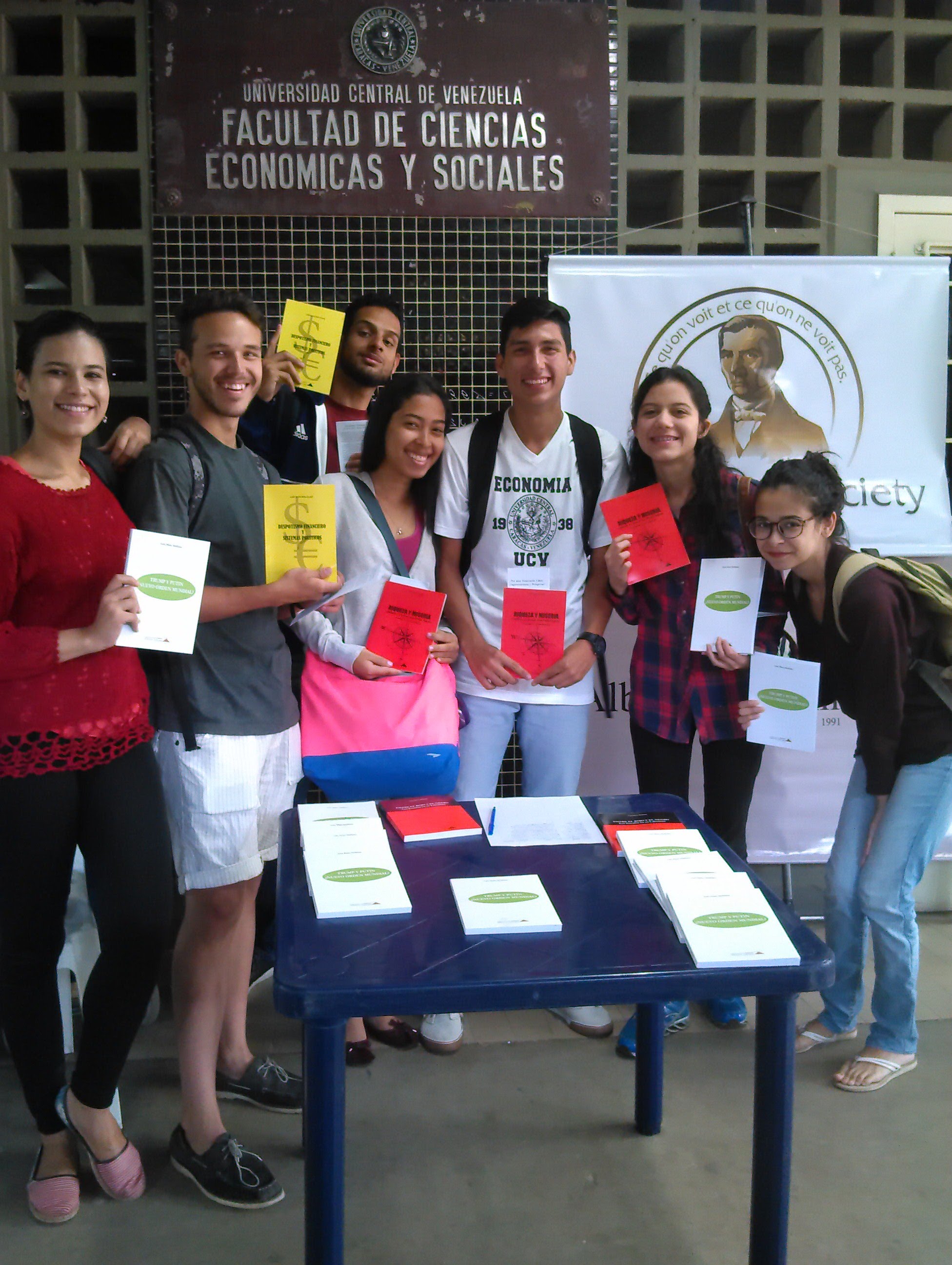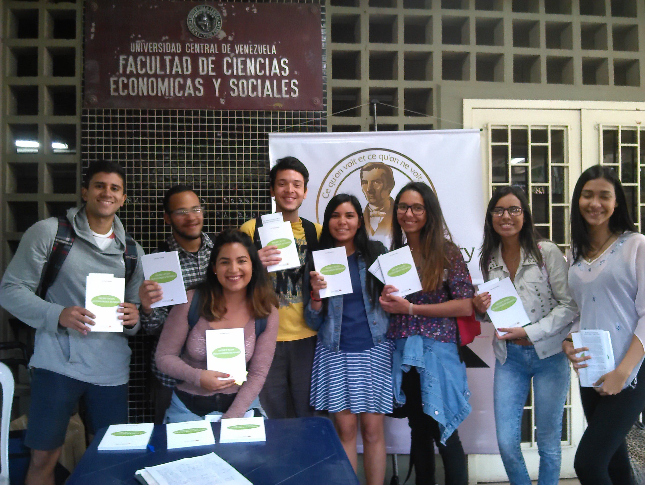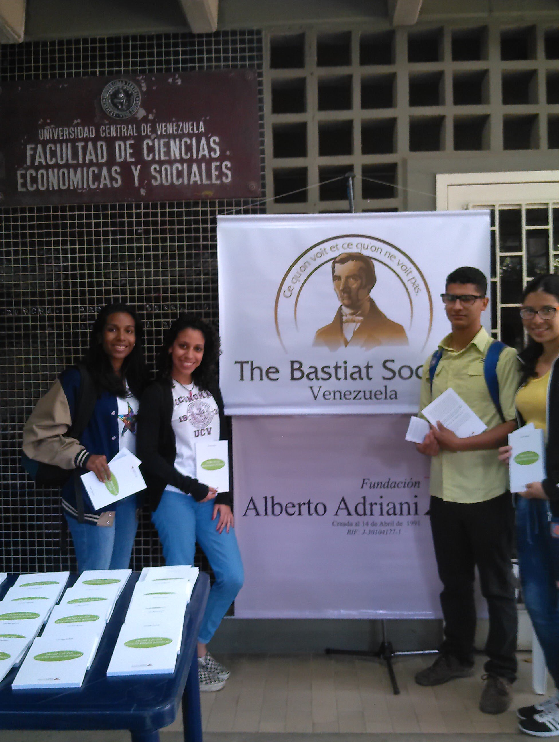 El 21-03-18 la Sociedad Bastiat estuvo en las puertas de la Facultad de Ciencias Económicas y Sociales de la Universidad Central de Venezuela obsequiando más de cien libros a estudiantes, profesores y transeúntes sobre el tema económico y político de las ediciones de la Fundación Alberto Adriani.