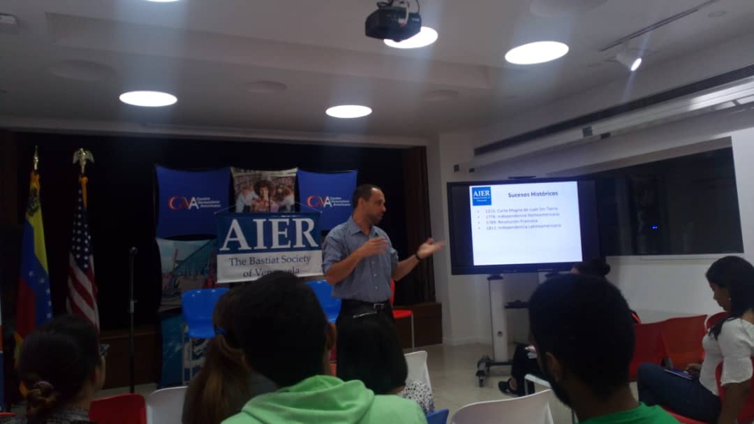El 16-05-19 la Sociedad Bastiat dicta en el CVA de Las Mercedes un taller de Democracia para los becarios de la Asociación Venezolano Americana de la Amistad, AVAA