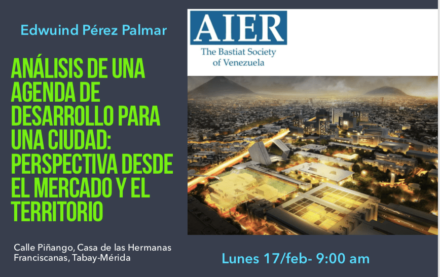 El 17 de febrero de 2020, la Sociedad Bastiat Venezuela dicta en la ciudad de Mérida su segunda charla del año, a cargo del profesor Edwuind Pérez Palmar, llevó por título Análisis de una Agenda de Desarrollo para una Ciudad: Perspectiva desde el Mercado y el Territorio