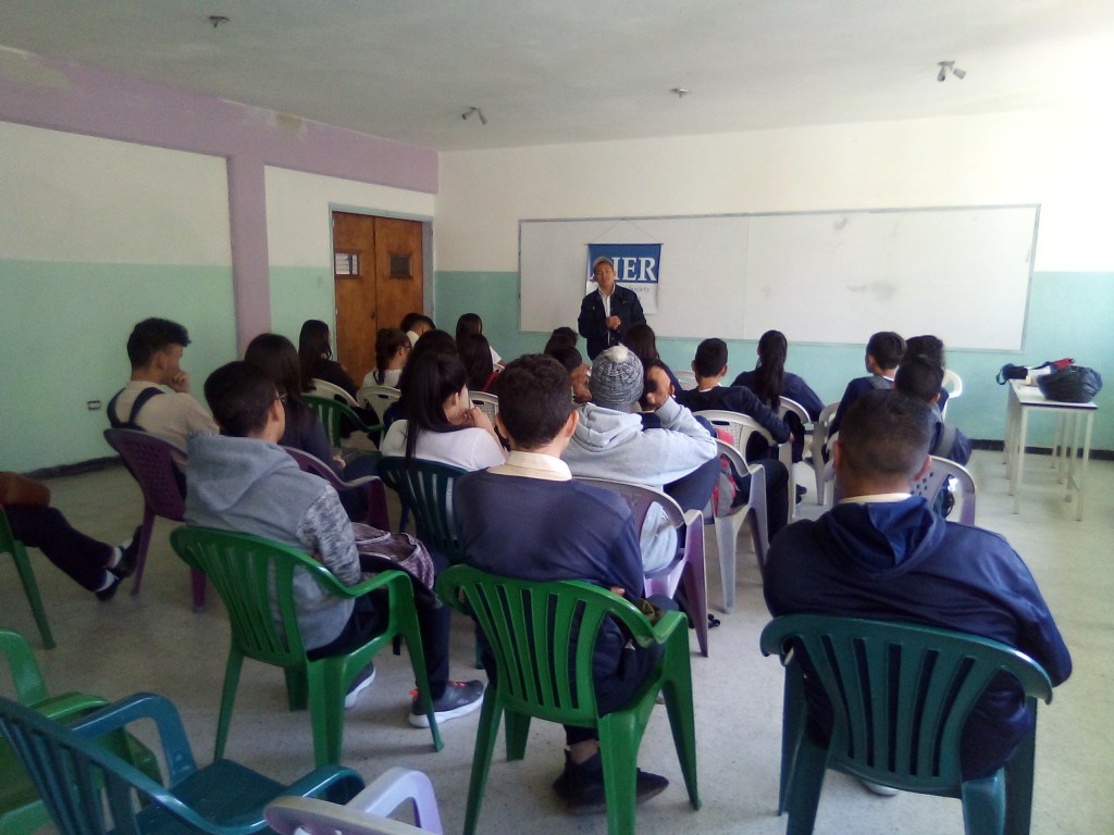 El profesor Edwuind Pérez Palmar dictó su conferencia de Geografía, Libre Mercado y Desarrollo, ante un nutrido grupo de jóvenes estudiantes de secundaria en la sede de una institución educativa en la ciudad de Mérida.