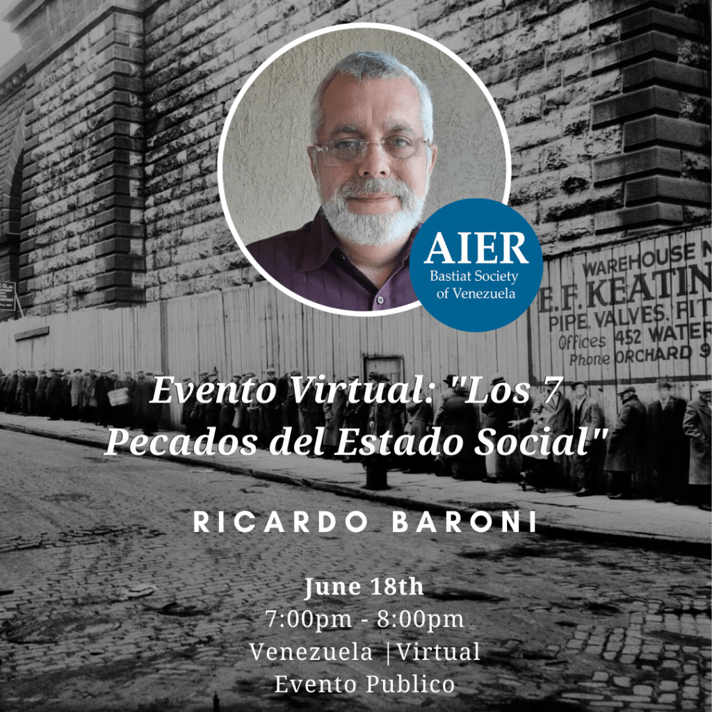 El 18-06-20 la Sociedad Bastiat, capítulo Venezuela tuvo una nueva y extraordinaria conferencia titulada, los 7 Pecados del Estado Social, a cargo de Ricardo Baroni.